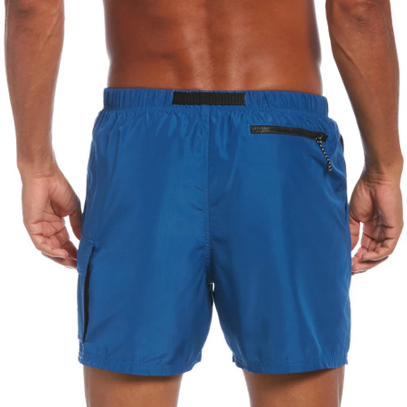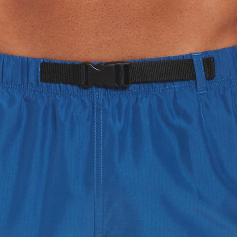 The Men’s Nike Swim Belted Packable 5″ Volley Short is built for comfort and convenience. These men’s swim trunks feature multiple pockets for hands-free storage, including on-seam pockets, a media pocket, a cargo pocket and a packable back zipper pocket that converts into a built-in bag. The stretch waistband has an exposed webbing belt for adjustable comfort and the built-in mesh brief offers a secure and supportive fit. The lightweight polyester fabric of these swimming trunks contains at least 75% recycled materials. (NESSB522)