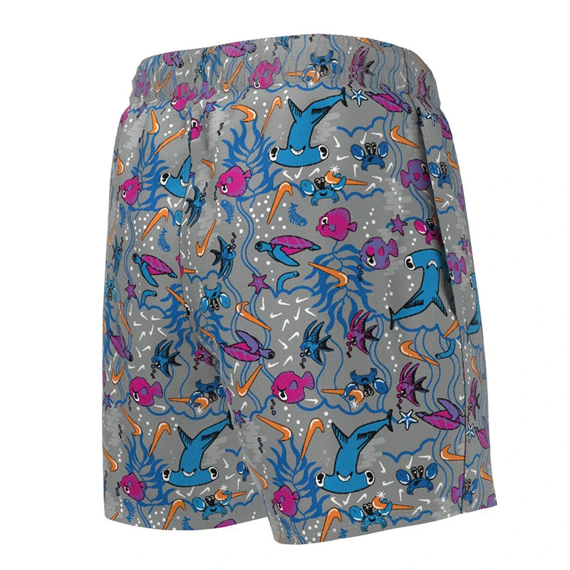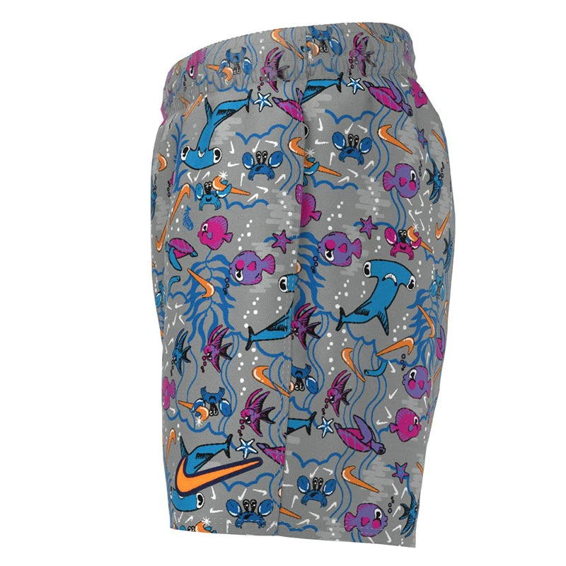 He’ll feel right at home in the water wearing the Boys’ Nike Swim Sea Friends Lap 4″ Volley Short. The fun all-over print of these boys’ swim trunks pops with an assortment of sea animals for a beach-ready look. The stretch waistband has an internal drawcord for flexible comfort and the built-in mesh brief helps ensure a secure and supportive fit. On-seam pockets offer handy hands-free storage space with mesh bags for water drainage to keep him dry. (NESSC795)