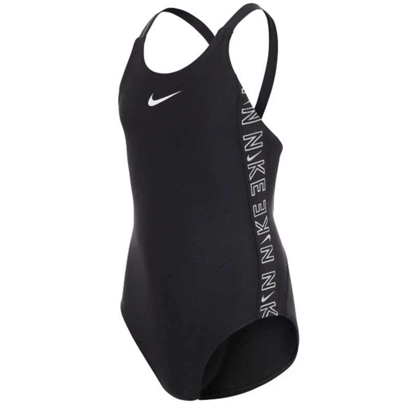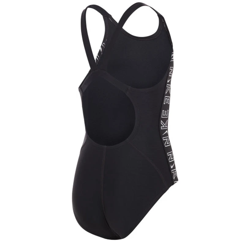 The Girl’s Nike Swim Logo Tape Fastback One Piece is made from chlorine-resistant swim-specific fabric for lasting good looks. Offering maximum support, it has a wide V-back seamless strap and moderate back coverage. With standard bottom coverage, the mid-leg cut sits just below the hip, allowing comfortable mobility. The one-piece swimsuit is fully lined for an improved fit and feel. Flat seams increase comfort against the skin. (NESSB758)