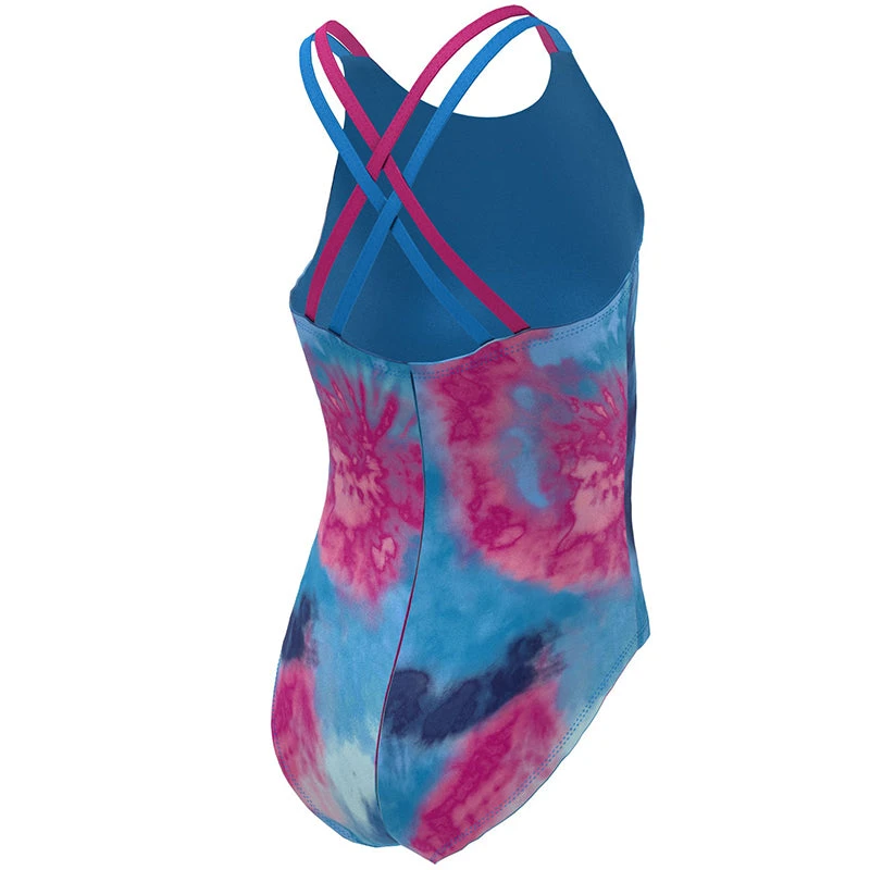 The Girls’ Nike Swim Tie Dye Spiderback One Piece is a fun and functional addition to her swimwear collection. This sporty one-piece swimsuit features an ergonomically enhanced fit that’s ideal for young athletes. The fashionable spiderback design provides optimal coverage while allowing for a greater range of motion as she swims. This athletic swimsuit offers standard bottom coverage that’s ideal for all of her favorite water activities and has a colorful tie-dye print that pops in or out of the water. (NESSC719)