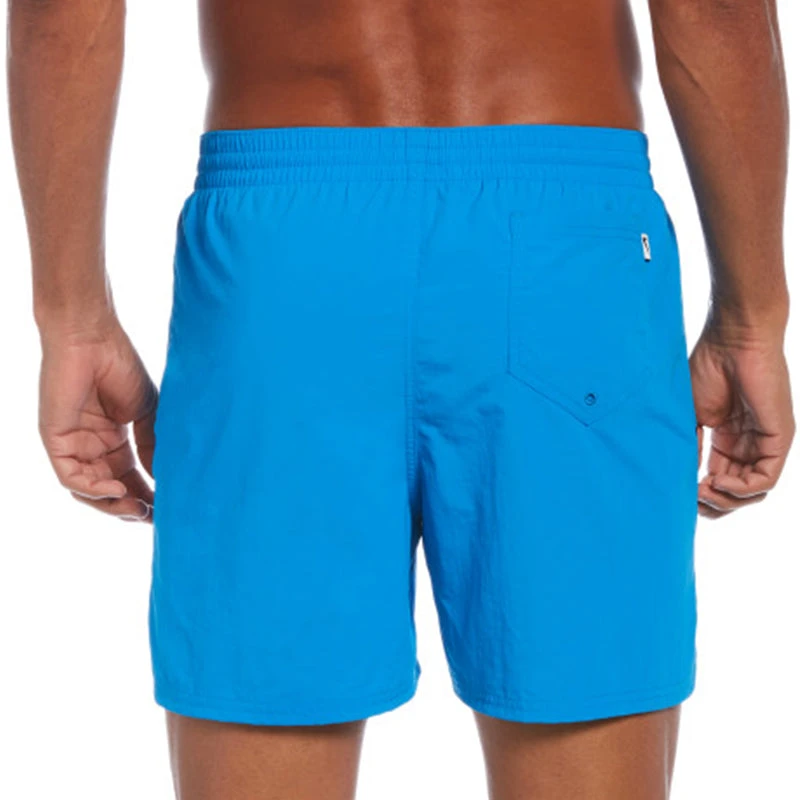 This Men’s Nike Swim Solid Icon 5″ Volley Short features a stretch waistband with exterior drawcord for customizable comfort. The swimming trunks, which are made with at least 75% recycled materials, are fully lined for an improved fit and feel. Side seam pockets with mesh pocket bags, a back patch pocket with grommet and an inner mesh media pocket efficiently drain water away and provide plenty of storage for small essentials. Comfortable and functional, they are sure to become a swimwear staple. (NESSB636)
