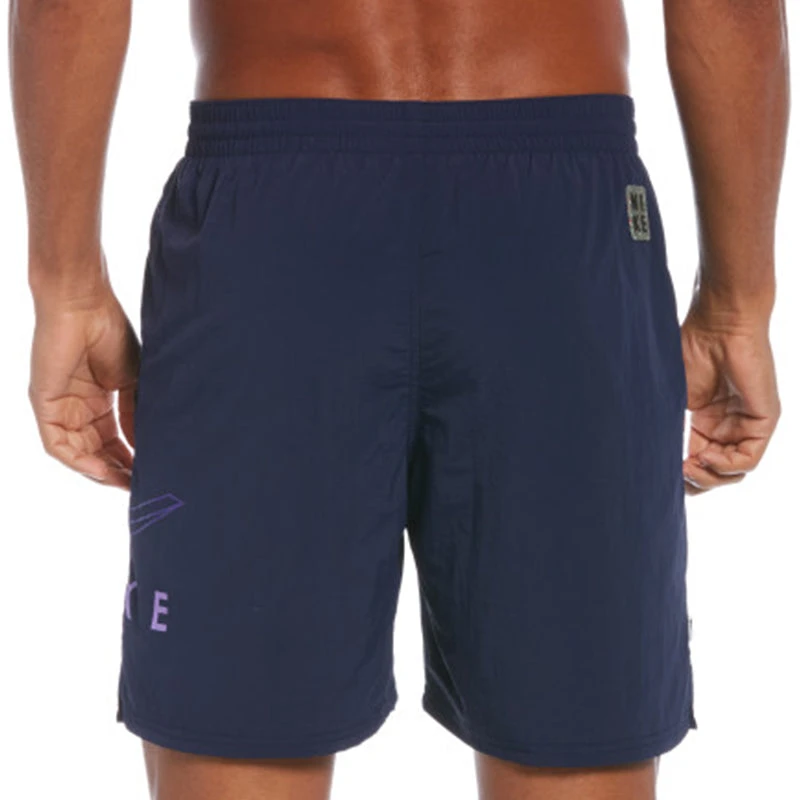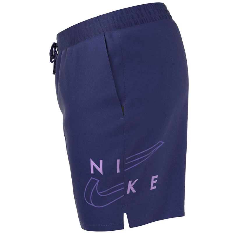 The Men’s Nike Swim Split Logo Icon 7″ Volley Short is crafted for comfort in and out of the water. These sporty swim shorts are equipped with a full mesh lining, and they have a stretch waistband with an exterior drawcord for adjusting the fit. They feature on-seam pockets with mesh pocket bags for water drainage, and an inner media pocket offers added storage for small items. A sustainable choice for swimmers, these men’s swim trunks are made with at least 75% recycled materials. (NESSC452)
