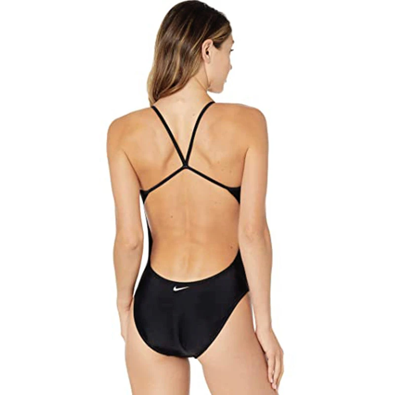 This Women’s Nike Swim Logo Cutout One Piece is designed to keep its good looks swim after swim. Chlorine-resistant swim-specific fabric provides durability and longevity. The cutout back with narrow straps and the cutout sides give it minimalist style. With standard bottom coverage, the high leg cut sits above the hip, allowing comfortable mobility. It’s fully lined for an improved fit and feel. Flat seams increase comfort against the skin. (NESSB131)